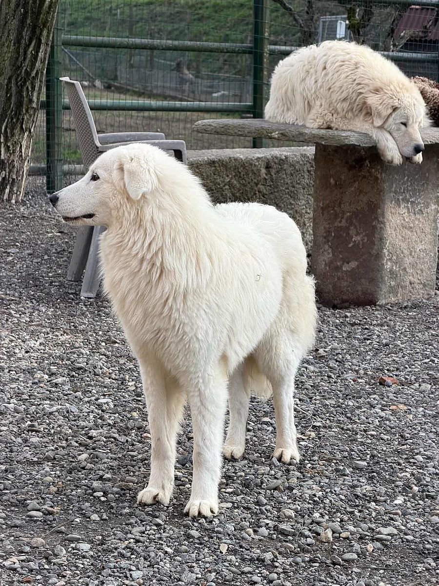 Bernadette è una giovane femmina che unisce tipicità morfologica, temperamento saldo e attitudine naturale alla protezione del territorio e del bestiame. Un soggetto promettente, destinato a maturare ulteriormente sia sul piano strutturale sia su quello caratteriale, e che già oggi esprime con chiarezza le qualità che un allevatore seleziona con attenzione e responsabilità.