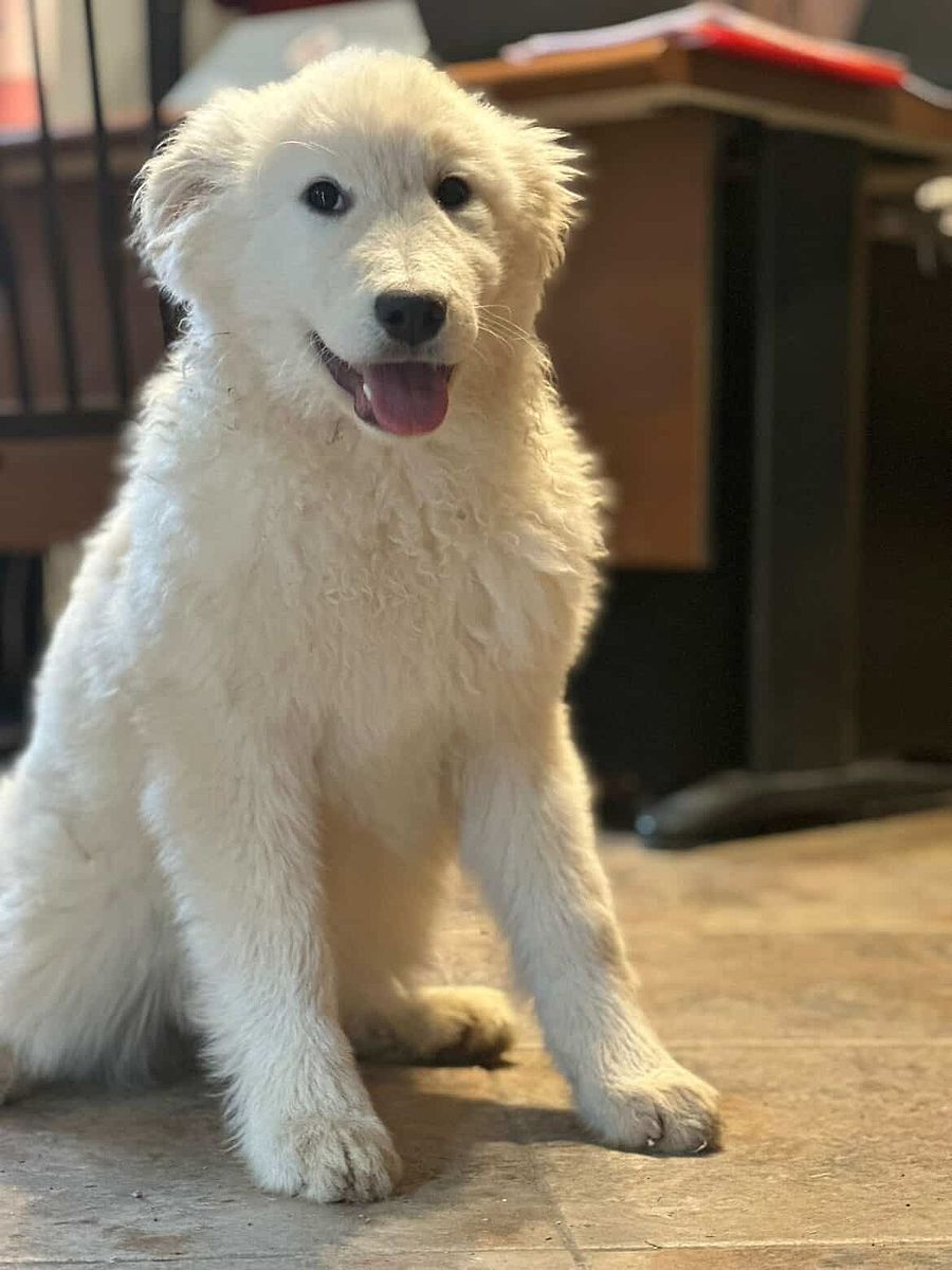 Pinza incarna le qualità tipiche del Pastore Maremmano Abruzzese: dolcezza, sensibilità e solidità, unite a una presenza elegante e rassicurante.