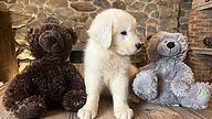 Questo piccolo maschio, pur nella sua tenera età, esprime già l’eleganza rustica e l’indole fiera che fanno del Pastore Maremmano Abruzzese un custode straordinario: è un cucciolo che promette solidità, equilibrio e nobiltà d’animo, qualità che solo un allevamento professionale e appassionato può assicurare.